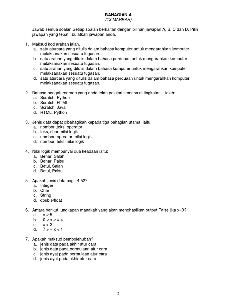 Ujian Akhir Semester 2 Tingkatan 2 Other Quiz Quizizz